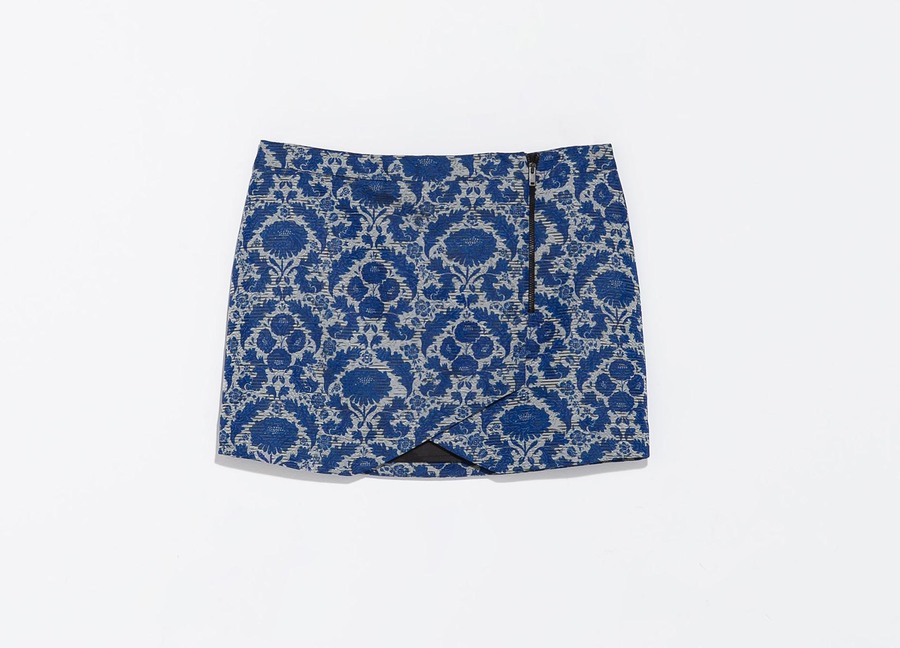 Brokatna suknja djeluje vrlo bogato i luksuzno, što je podiglo crnu čupavu i mekanu vestu te dnevnu torbu.