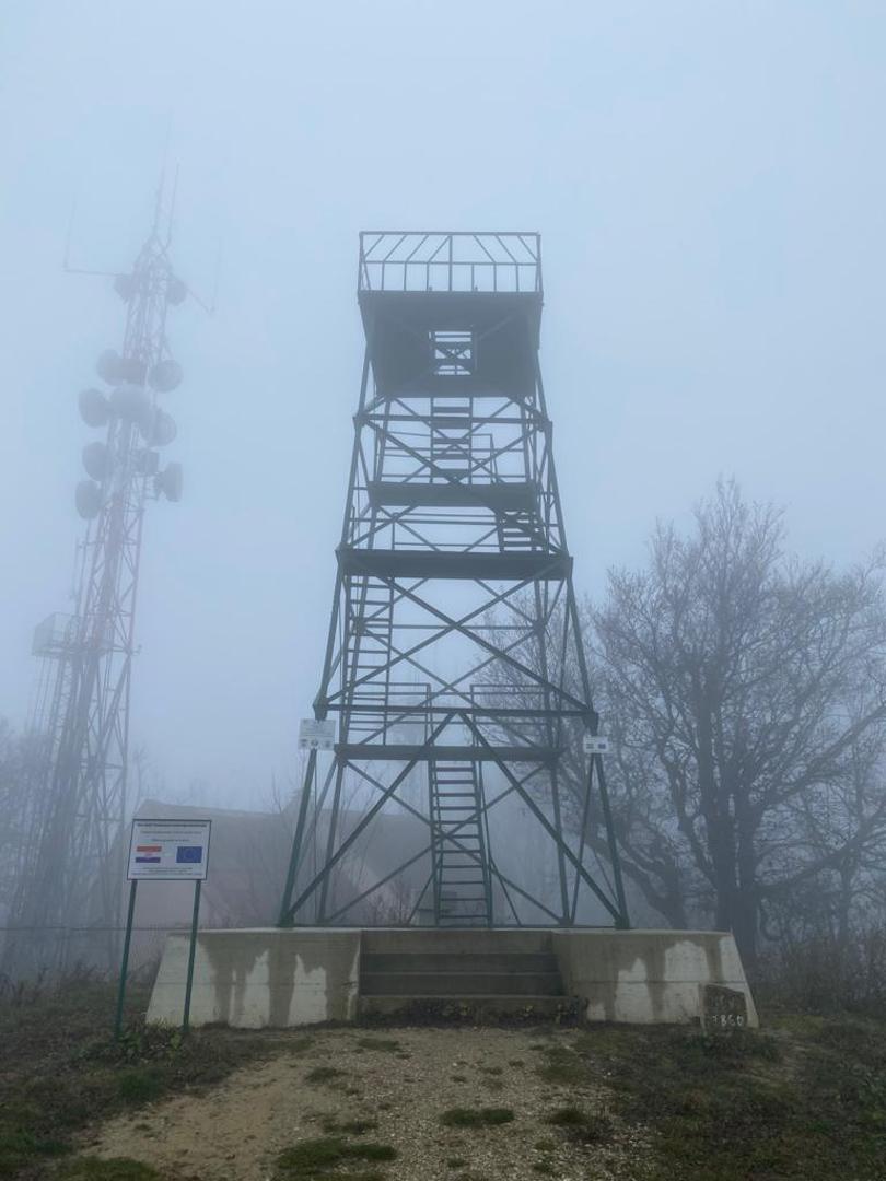Nakon fotografiranja nastavljamo uspon prema vrhu Babinu zubu. Dobro markirana planinarska staza vodi nas kroz šumovite predjele koji se izmjenjuju s nešto zahtjevnijim stjenovitim usponima. Staza između stijena na trenutke je uska i skliska. Uz maglu koja nas prati cijelim putem traži od nas dodatan oprez. S vrha Babina zuba (678 m) za lijepog vremena puca pogled na Zagorje i Medvednicu.