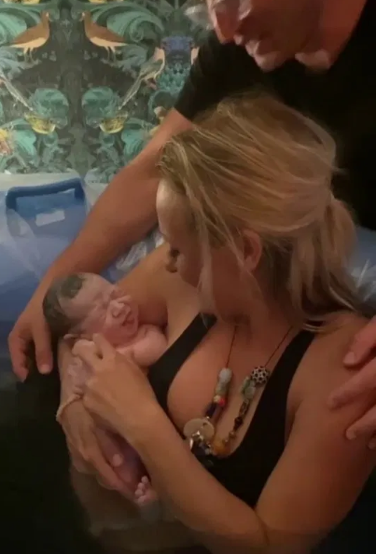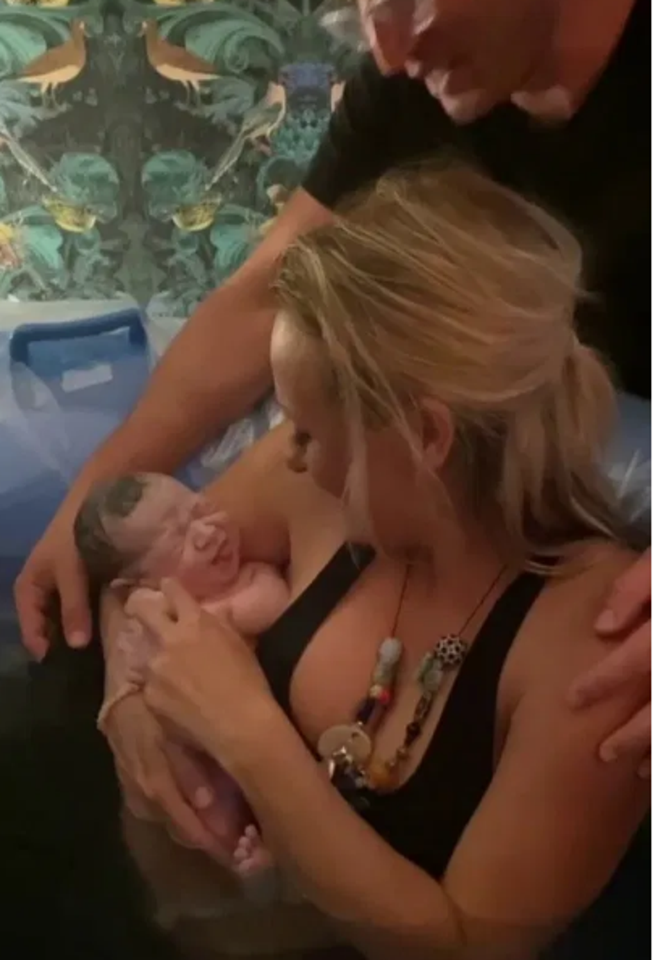 Trudove je počela osjećati 1. lipnja, a odmah je pružila mobitel prijateljima i obitelji kako bi počeli prijenos. Podršku joj je pružao i suprug Rowan, dvije primalje, doula i petero djece. Zapalila je svijeće, upalila glazbu i kretala se po sobi kako bi ublažila bolove, a kada se dovoljno otvorila sjela je u bazen.