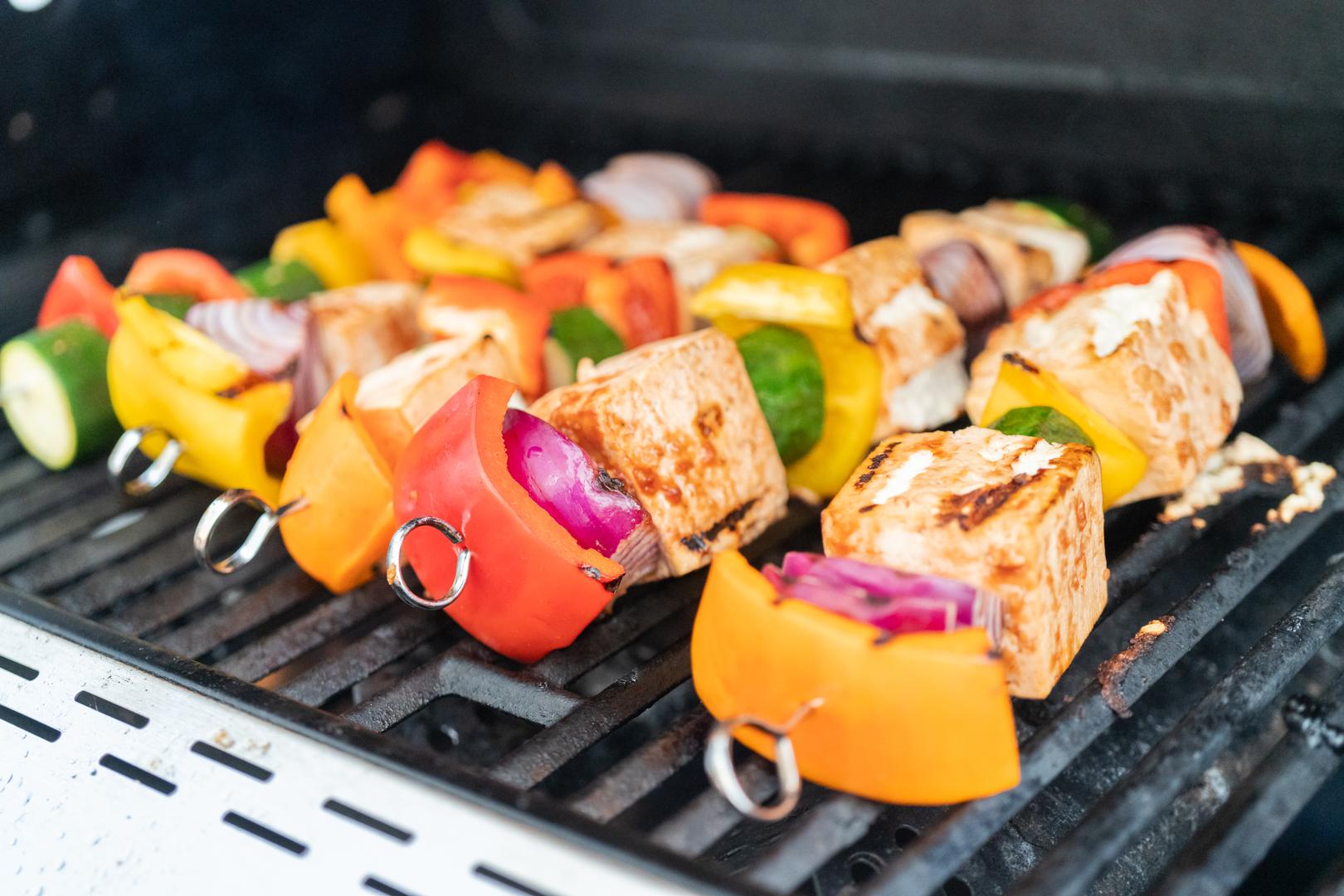 Vegetarijanska ili veganska jela s roštilja mogu također biti super ukusna i sočna ne pretjerate li s pečenjem. Patlidžani i tikvice narezani na kriške, paprika na četvrtine ili prepolovljena rajčica peku se obično 6-8 minuta na izravnoj vatri, šampinjoni ili šparoge u komadu najviše 10-ak, klip kukuruza i cijela paprika umotani u listove ili aluminijsku foliju 15-20 minuta, krumpir ili batat u aluminijskoj foliji 50-60 minuta. A kad ih ispečete, niz je kremastih preljeva i umaka kojima ih dodatno možete obogatiti - bilo da će povrće, od šparoga do kukuruza, artičoke, krupmira, batata..., tofua ili halloumi sira, veganske kobasice, ćevapčići i ostale namirnice koje ste odabrali za roštiljanje biti u glavnoj ili sporednoj ulozi na vašem stolu. Kreativnost i stil ovdje su itekako na cijeni.