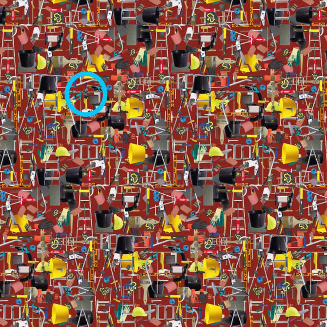 Tvrtka koja se bavi prodajom materijala za popravke krovova Burton Roofing na svojoj je stranici objavila sliku s puno građevinskih materijala na koj se skriva i šišmiš. Teško ga je pronaći jer je skupljen i crn, a mnogo je predmeta na slici iste boje.