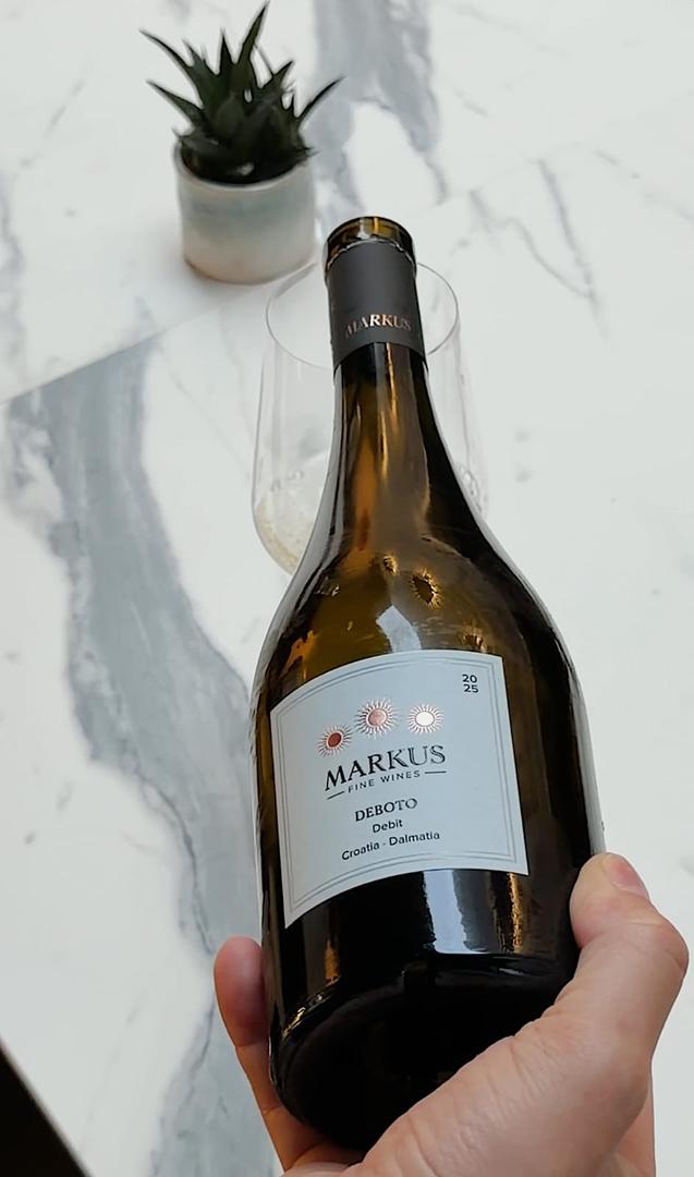 Deboto 2025., napravljen od 100 % debita iz vinograda u Oklaju, dolazi kao pravo osvježenje za ljetne mjesece. Lagane je strukture i umjerenog alkohola (12 %), s aromama zelene jabuke, limete i bijelog cvijeća. Ovo vino djeluje gotovo eterično – čisto, precizno i iznimno pitko, ali nikako banalno, nego utjelovljuje onu nježnu stranu Dalmacije. Nakon kratke hladne maceracije slijedi fermentacija u inoks spremnicima uz kontroliranu temperaturu, gdje vino dozrijeva osam mjeseci na finom talogu. Riječ je o vinu koje savršeno prati bijelu ribu na žaru, školjke, carpaccio od brancina, ali i jednostavne, lagane ljetne salate. Markusov Deboto jednako dobro funkcionira i u onim dugim, toplim večerima kada ništa ne treba komplicirati pa je uz čašu dobrog vina dovoljno ponuditi svježi kozji sir i druge dalmatinske delicije”, objasnio je enolog Jeličić.