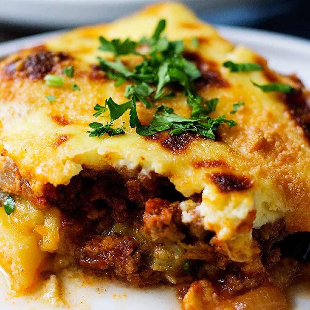 Na 1 dl maslinova ulja propržite 40 dag balancana i 20 dag tikvica u poprečnim ploškama. Slažite ih u redove, prvo red balancana, pa red tikvica do polovice posude za pečenje, posolite i zaljutite poluljutom paprikom. Tada debelo razmažite po površini povrća 40 dag junećeg mesa koje ste propirjali na maslinovim uljem premazanoj tavi, pa onda nastaviste slagati, red tikvica, koji premažite s 3 dag grčkog kozjeg jogurta, pa red balancana, pa opet red tikvica. Opet oprezno posolite i zaljutite poluljutom paprikom. Tada debelo razmažite po površini povrća 40 dag junećeg mesa koje ste propirjali na maslinovim uljem premazanoj tavi, pa onda nastaviste slagati, red tikvica, koji premažite s 3 dag grčkog kozjeg jogurta, pa red balancana, pa opet red tikvica. Opet oprezno posolite i zaljutite i završite redom balancana, tek malo premazanim grčkim jogurtom (može i kravljim). Stavite posudu s musakom u pećnicu, te pecite na manjoj toplini, dok se ne uhvati blaga korica na površini jela. Izvadite iz pećnice pa pustite da musaka malo dahne i učvrsti se. Služite jelo izrezano na kocke ukrašeno pečenim maslinama. Izvorno grčko jelo, koje se proširilo i na tursko carstvo, srpski i bosanski pašaluk, ali s nepotrebnim debljim ploškama krumpira među drugim sastojcima, koji musaki daje težinu i slabiji okus.
