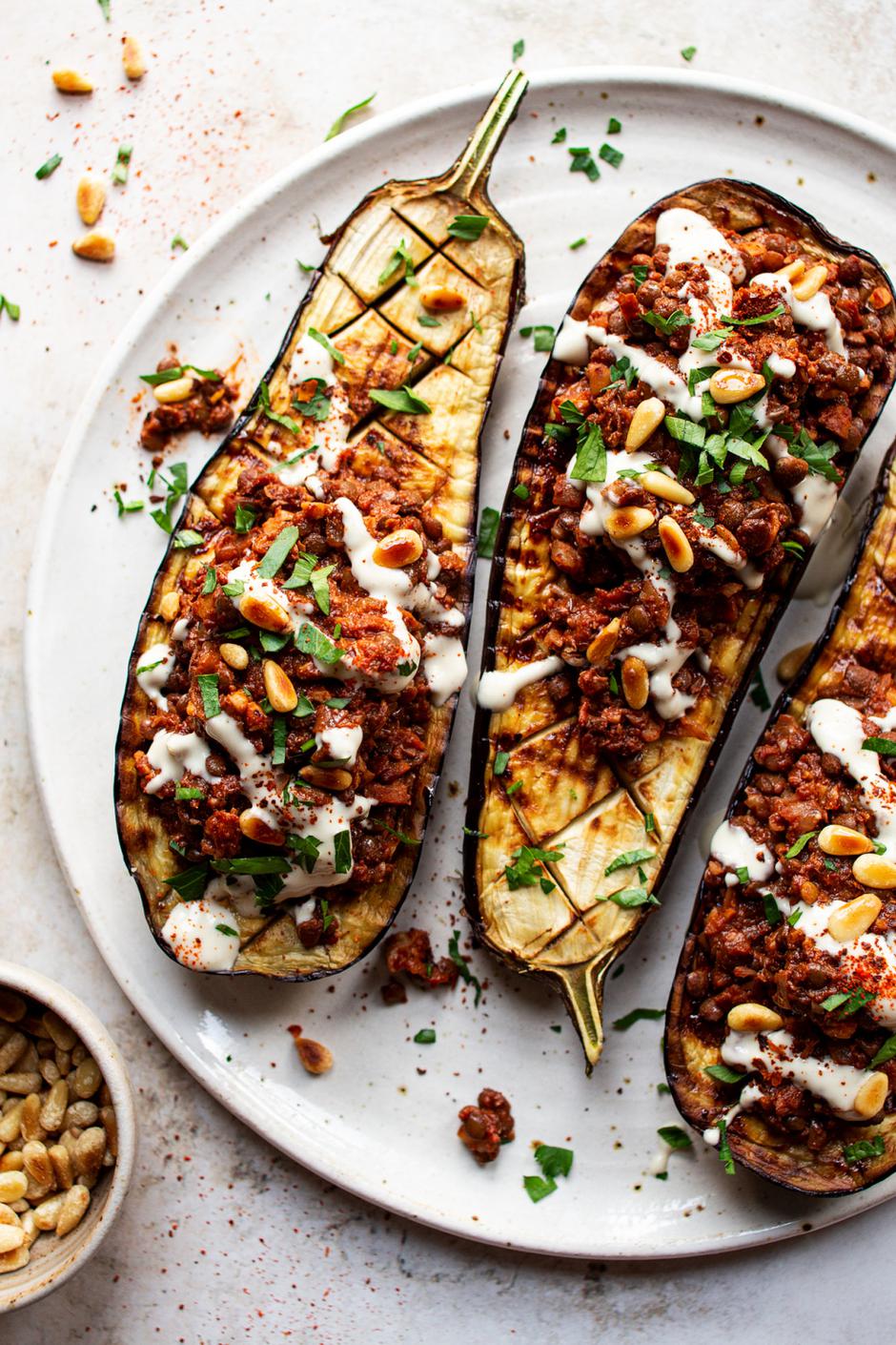 Na maslinovu ulju u tavi zazlatite 1 patlidžan od oko 10 dag izrezan u tanke polumjesece, pa kad se potpuno opuste, dodajte 1 sitno sjeckanu rajčicu i 3 dag pancete u ploškicama. Kad se sve propirja i poveže, pomaknite povrće uz rubove i rastvorite sredinu tave te ubacite 1 jaje i pustite da se ispeče među šalšom od patlidžana i pancete. Posolite, zaljutite 1 malom žličicom poluljute paprike i služite odmah. Na 1 dl maslinova ulja propržite 40 dag balancana i 20 dag tikvica u poprečnim ploškama. Slažite ih u redove, prvo red balancana, pa red tikvica do polovice posude za pečenje, posolite i zaljutite jednom malom žličicom poluljute paprike i služite odmah.
