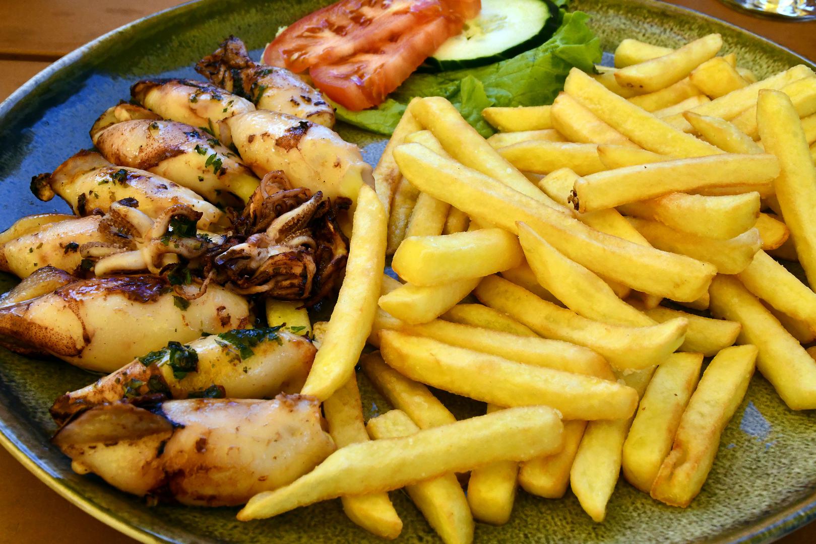 Cijene su umjerene, porcije dostatne, hrana u redu, a prostor čist. Slatinčani preporučuju ovaj restoran, baš kao i recenzije na internetu, no uzmimo u obzir da u samom gradu baš i nema restorana. Mi smo se odlučili za lignje punjene šunkom i sirom (s prilogom su 12,8 eura) i zelenu salatu (tri eura).