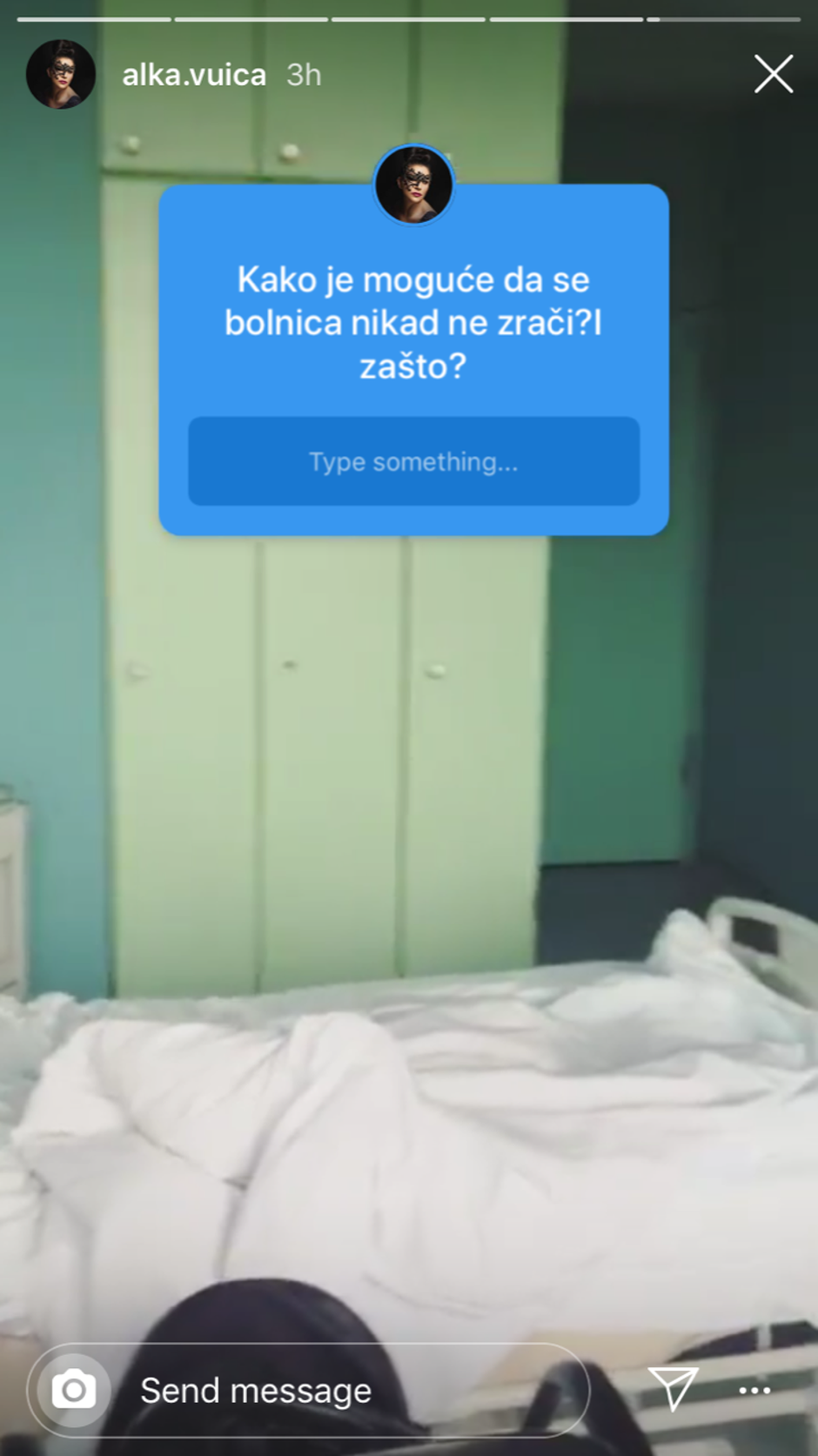 Prokomentirala je i kako su skinute kvake s prozora te pratitelje upitala kako je moguće da se bolnica nikad ne zrači.