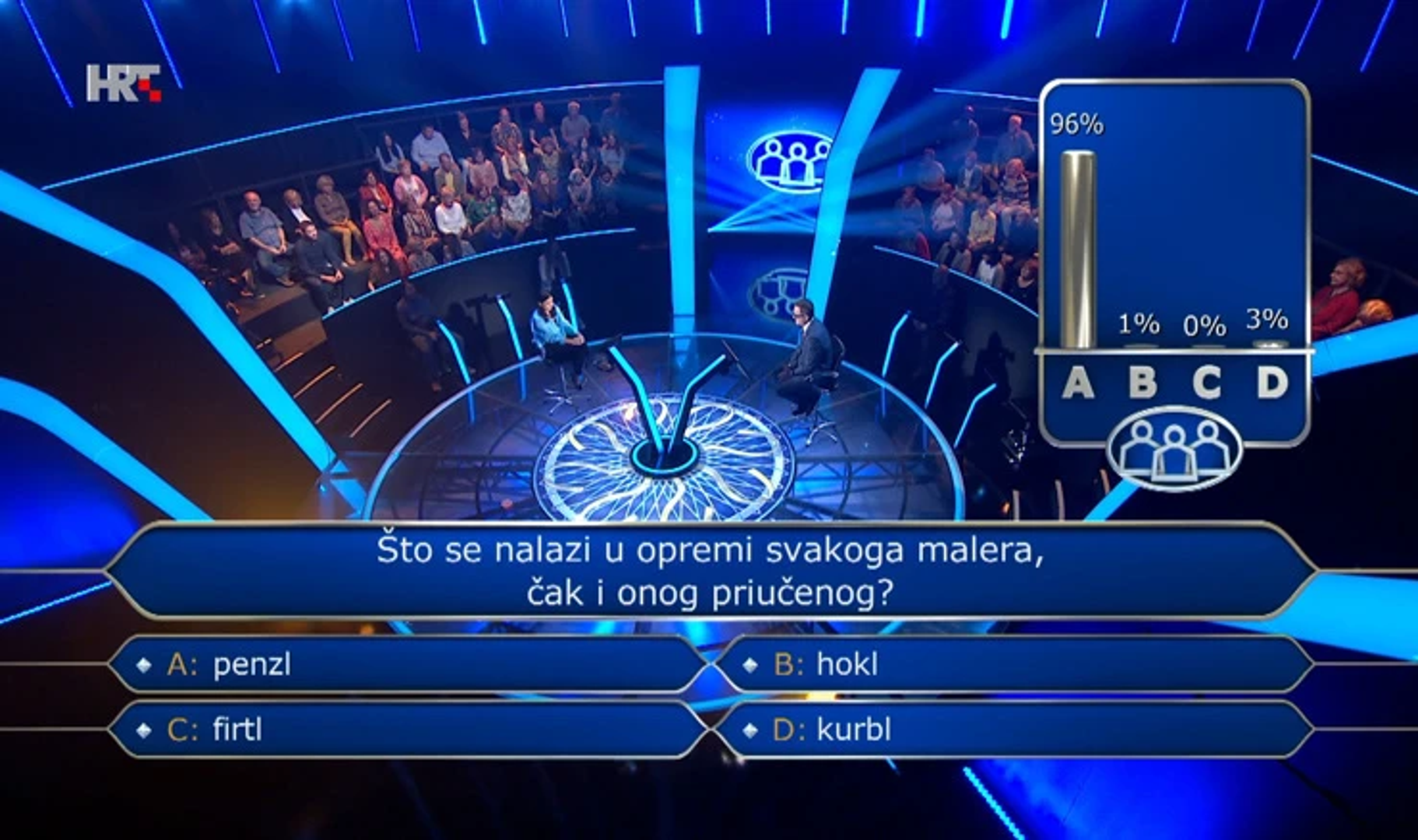 Nije znala nalazi li se penzl, hokl, firtl ili kurbl u opremi svakog malera, čak i onog priučenog. Zahvaljujući publici, koja je penzlu dala 96% glasova, Ana je osvojila 2000 kuna.