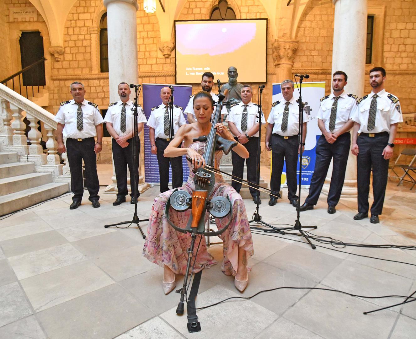 Naime, poznata violončelistica postala je promotorica nacionalne kampanje MUP-a pod nazivom „Manje oružja, manje tragedija“, a violončelo, koje je u trajnom vlasništvu MUP-a, izrađeno je od dijelova dobrovoljno predanog oružja građana. Kao fenomenalna uvertira današnjem koncertu, sinoć je u Kneževom dvoru održana premijera filma „Od strahote do ljepote“, koji prikazuje nastanak glazbala od dijelova dragovoljno predanog oružja građana. Večer je bila obogaćena glazbenim nastupom Ane Rucner i Policijske klape Sv. Mihovil, ali i emotivnim dramskim nastupom akademske umjetnice Perice Martinović. Na obje svečanosti, Ana Rucner nosila je specijalno izrađene kreacije bosanskohercegovačke dizajnerice Belme Tvico.