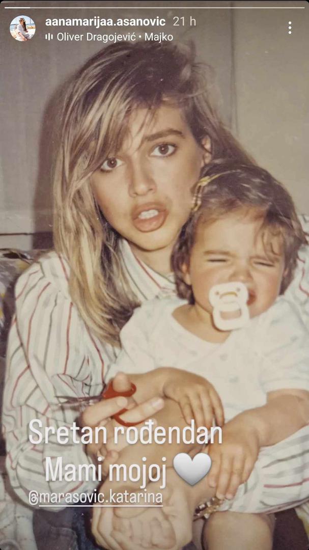 Splitska dizajnerica Anamarija Asanović na društvenoj mreži Instagram čestitala je rođendan svojoj mami Katarini Marasović. Tim je povodom objavila njihovu staru fotografiju uz koju je napisala: - Sretan rođendan mami mojoj - dodala je i emotikon srca te pjesmu pokojnog Olivera Dragojevića 'Majko'. Inače, Anamarijin otac legendarni vatreni Aljoša Asanović godinama intrigira domaću javnost svojim privatnim životom. Naime, Aljoša i Katarina vjenčali su se 198. godine, a osim što imaju najstariju kći Anamariju, imaju i sina Antonija koji je jako nalik ocu. Također se bavi nogometom.