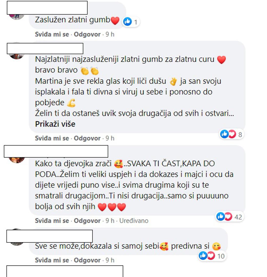 ..SVAKA TI ČAST,KAPA DO PODA..Želim ti veliki uspjeh i da dokažeš i majci i ocu da dijete vrijedi puno više..i svima drugima koji su te smatrali drugačijom..Ti nisi drugačija..samo si puuuuno bolja od svih njih", neki su od komentara na društvenim mrežama.