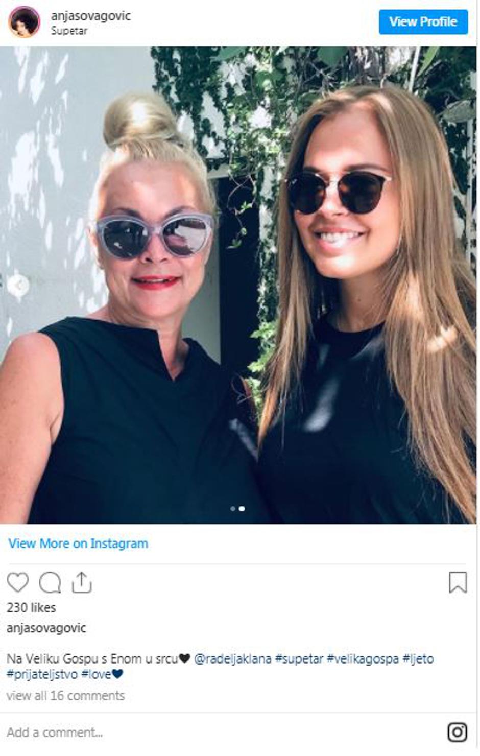 Glumica Anja Šovagović Despot na Instagramu je objavila fotografiju s kćeri pokojne glumice Ene Begović, Lanom Radeljak. Anja je Lanu srela u Supetru na Braču gdje ima obiteljsku vikendicu.