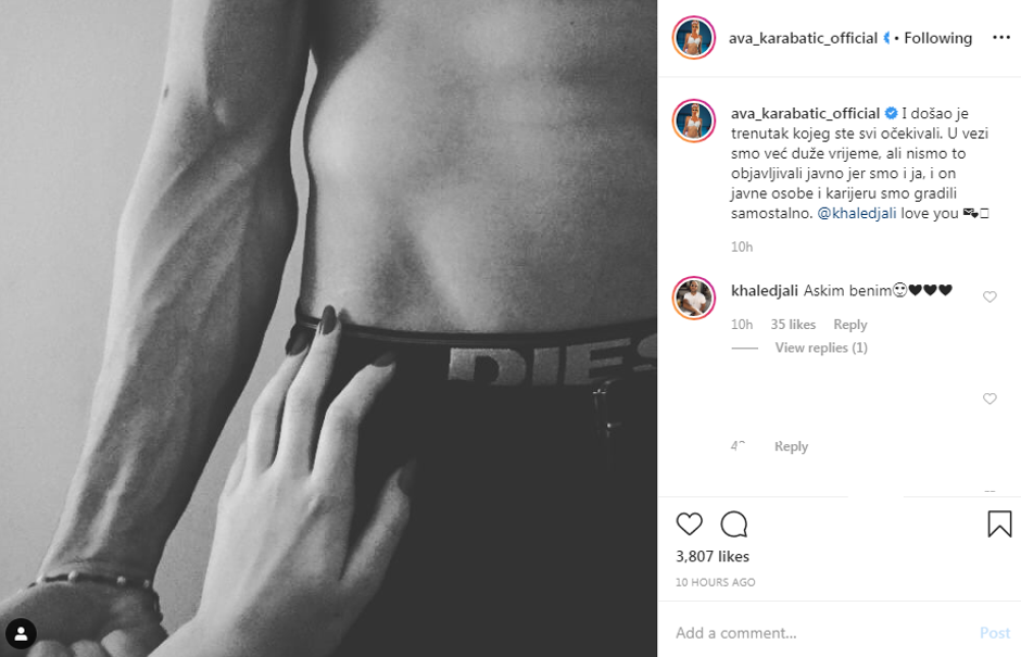 Ava Karabatić iznenadila je pratitelje na Instagramu najbovijom objavom. Naime, priznala je u vezi te pokazala dečka, turskog manekena Khaleda Alija.