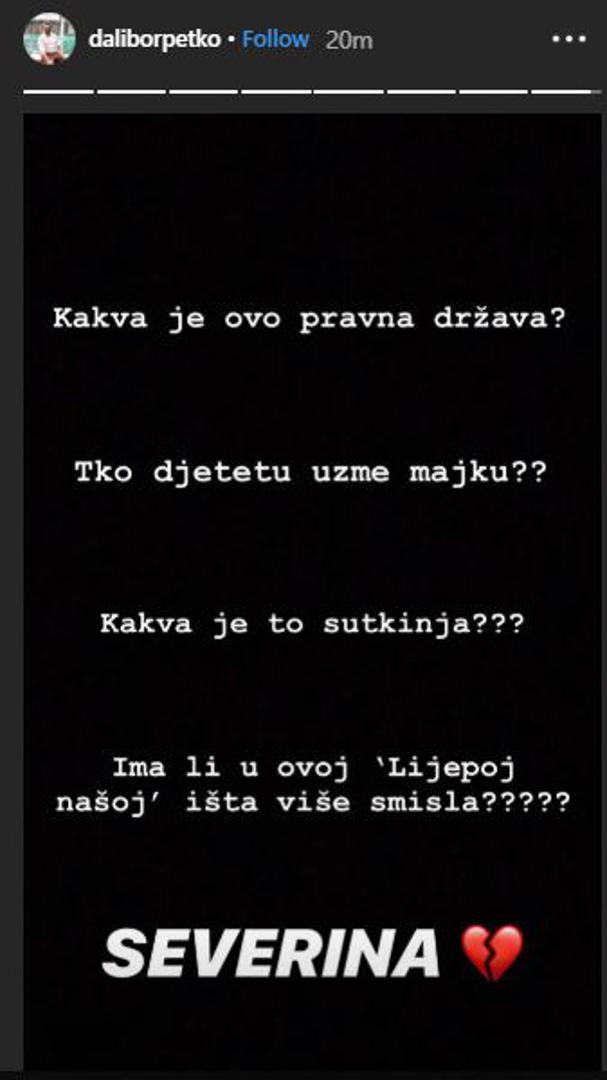 - Ne vjerujem više u pravdu. Kako? Mama je samo jedna - napisala je Radić na Instagram pričama, a u pozadini se čuje Severinina pjesma "Rođeno moje".