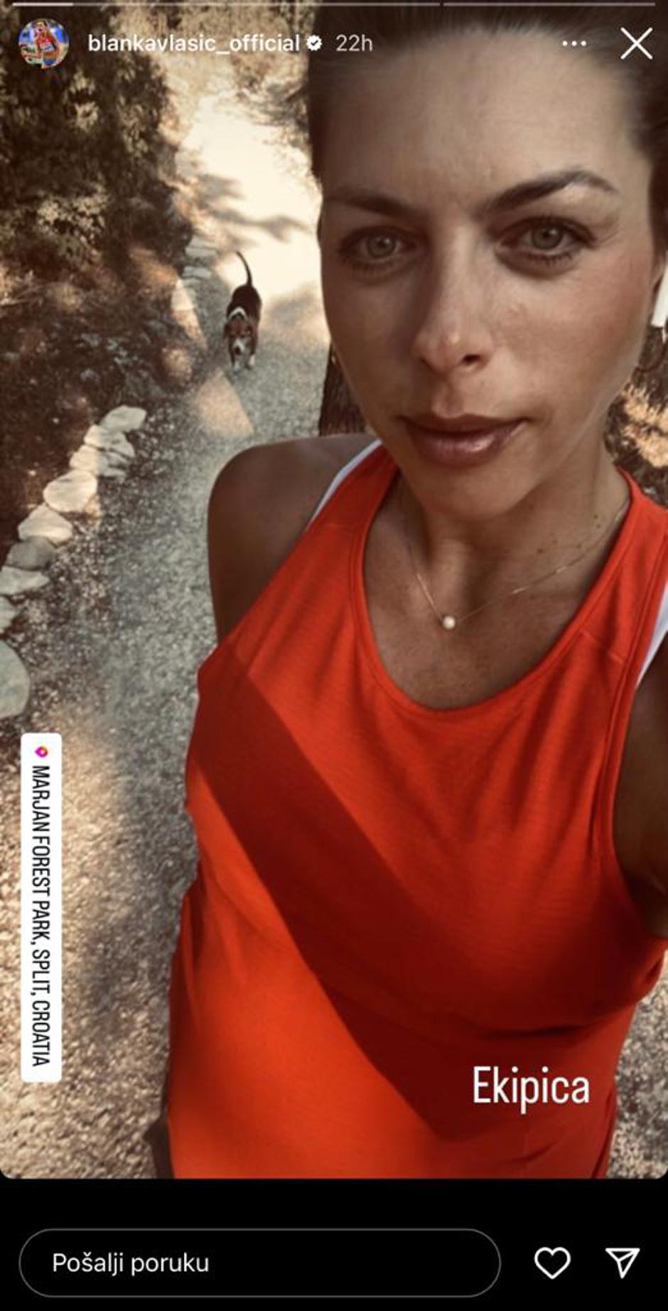 Na Instagramu se oglasila i Blanka koja je s pratiteljima podijelila kako uživa u šetnji Marjanom sa svojom kujicom Rozom. Na fotografiji je napisala 'ekipica' i ponosno istaknula svoj trudnički trbuh, odnosno trećeg člana ekipe. Otkako je trudna, svoje privatne trenutke rado dijeli s pratiteljima na društvenim mrežama, a nakon što ih je iznenadila fotografijom u kupaćem kostimu Blanka je pratitelje počastila i videom koji pokazuje kako održava formu u trudnoći.