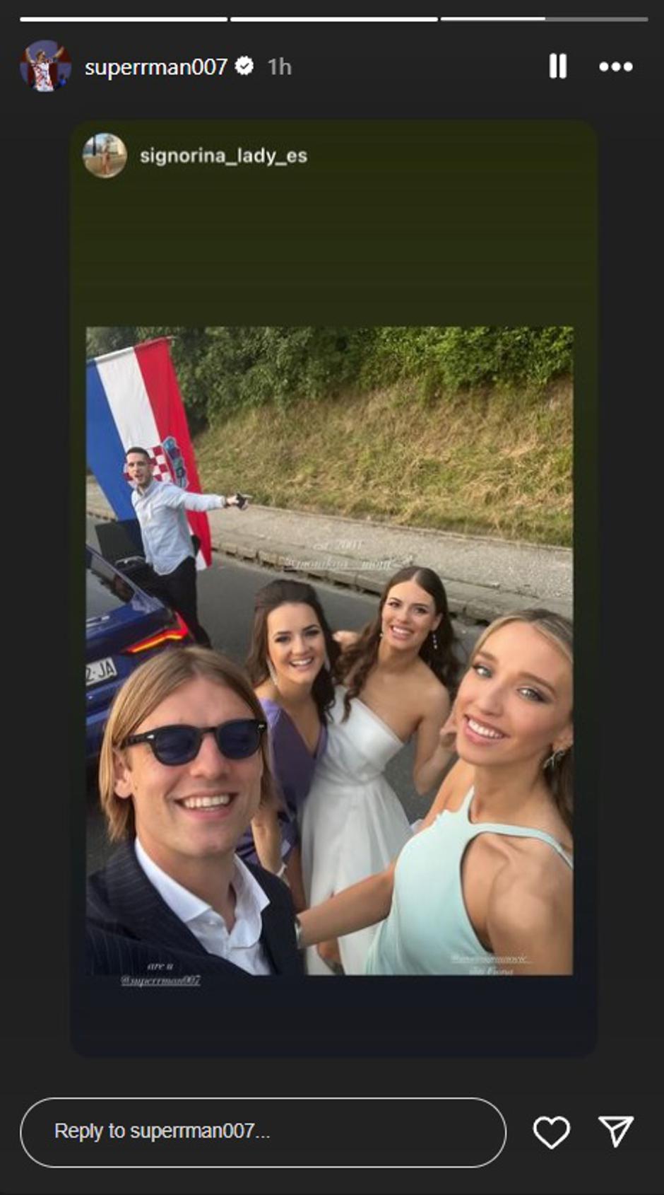 Naš nogometni reprezentativac i igrač Ajaxa Borna Sosa (26) na društvenim mrežama rijetko objavljuje privatne fotografije i na Instagramu nema fotografija s djevojkom Ivonom Šimunović, ali napravio je jednu iznimku i sada je na Instagram storyju objavio zajedničku fotografiju. Par je bio na jednom vjenčanju i Borna je objavio fotografiju na kojoj je Ivona u svjetloplavoj haljini.