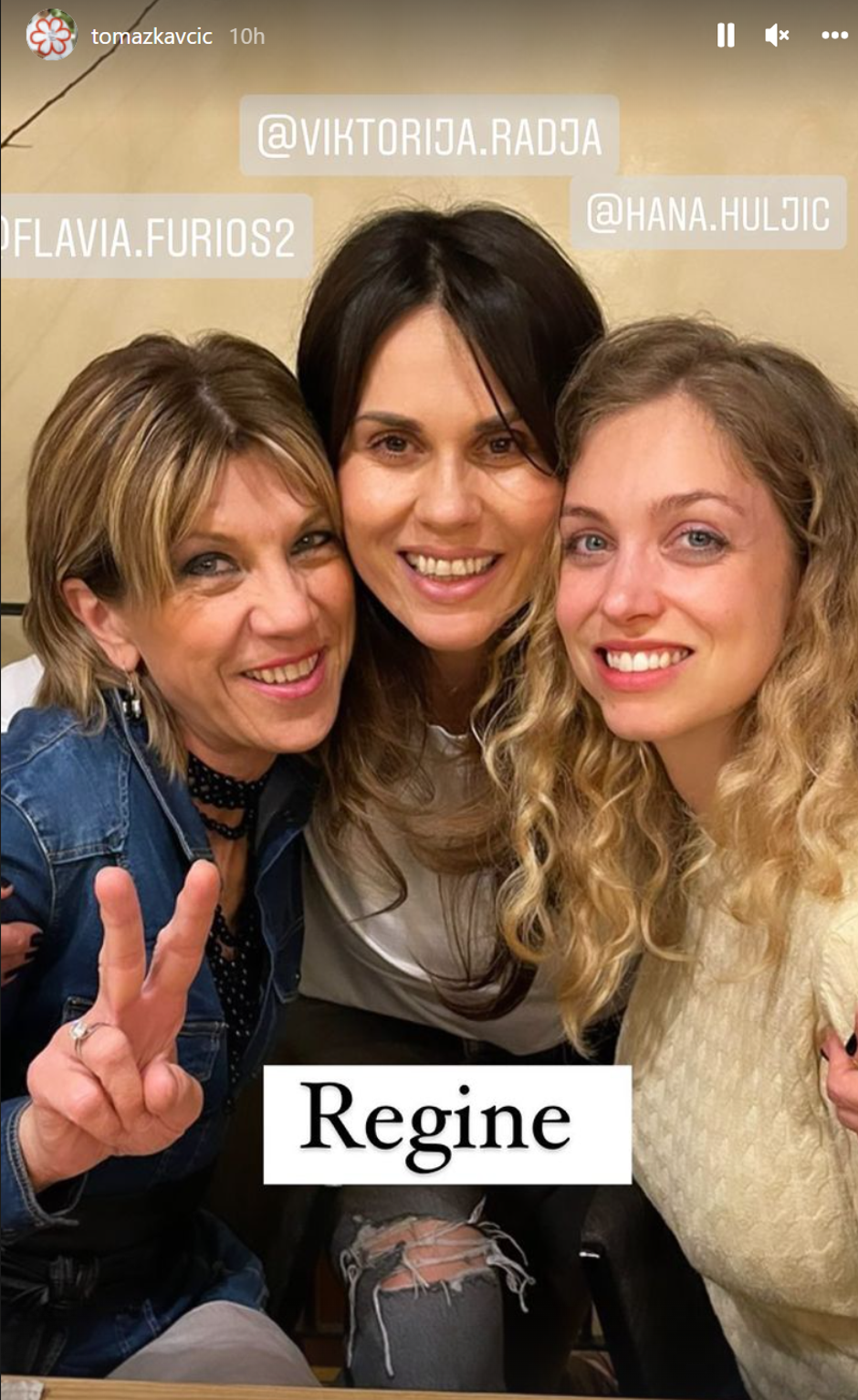 Viktorija Rađa na svojem je profilu objavila fotografiju na kojoj su pozirali njezin suprug Dino, Petar i slovenski chef Tomaž Kavčič. Tomaž je nakon toga objavio fotografiju na kojoj se pozirale njihove partnerice, odnosno njegova supruga Flavia Furious Kavčič, Viktorija i Hana Huljić Grašo. Kumovi i kume pozirali su zagrljeni s velikom osmjehom te su uživali u zajedničkom druženju.