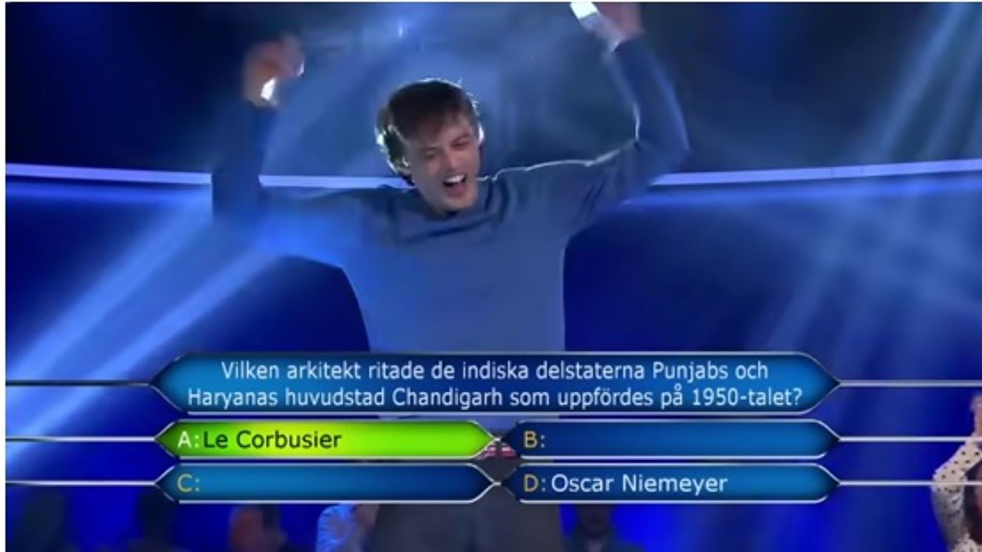 Pitanje je glasilo: "Koji je arhitekt projektirao Chandigarh, glavni grad indijskih država Punjab i Haryana, koji je izgrađen 1950-ih godina?" Von Essen je odmah znao točan odgovor, ali je svojim performansom odlučio zabaviti publiku i voditelja. Neko je vrijeme razmišljao, a potom je odlučio iskoristiti džoker "zovi prijatelja".