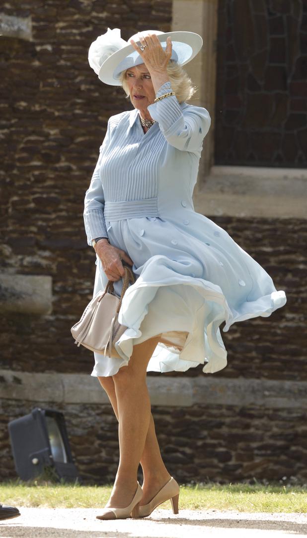 Supruga princa Charlesa za ovu svečanu prigodu udjenula je elegantnu svijetloplavu haljinu ne sluteći da će joj upravo ona stvoriti neugodnu situaciju na ceremoniji. Naime, nakon što je izašla iz crkve, nestašan vjetar podigao je Camillinu haljinu i zamalo pokazao sve ono što bi u ovakvim situacijama trebalo ostati dobro skriveno .