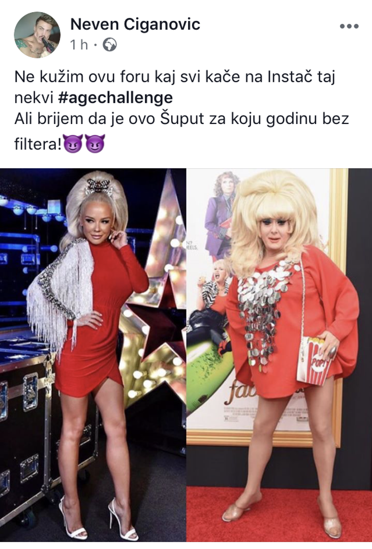 Ali brijem da je ovo Šuput za koju godinu bez filtera! - dodao je Ciganović uz kolaž fotografiju Maje i Lady Bunny.