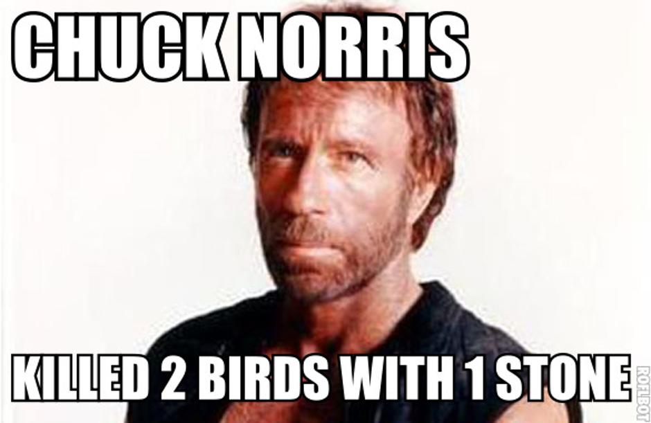 Chuck Norris može jednom pticom ubiti dva kamena.