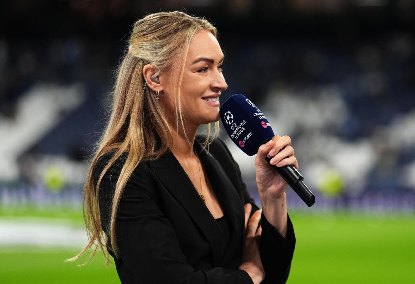 TNT Sports' Laura Woods and Steven Gerrard before the UEFA Champions League match at the Bernabeu in Madrid, Spain. Picture date: Wednesday December 10, 2025. Photo: Mike Egerton/PRESS ASSOCIATION