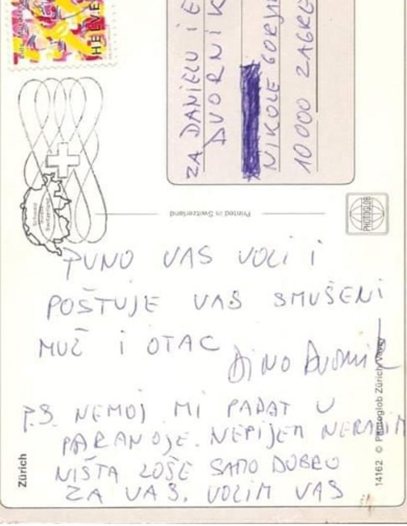 Danijela Dvornik odlučila je prekopati stare obiteljske uspomene. Među njima je pronašla i razglednicu koju joj je Dino poslao tijekom jednog putovanja u Švicarsku. Preminuli glazbenik Danijelu je obavijestio da je sve pod kontrolom i da ne mora brinuti, a ona ju je s oduševljenjem podijelila s pratiteljima na društvenim mrežama.