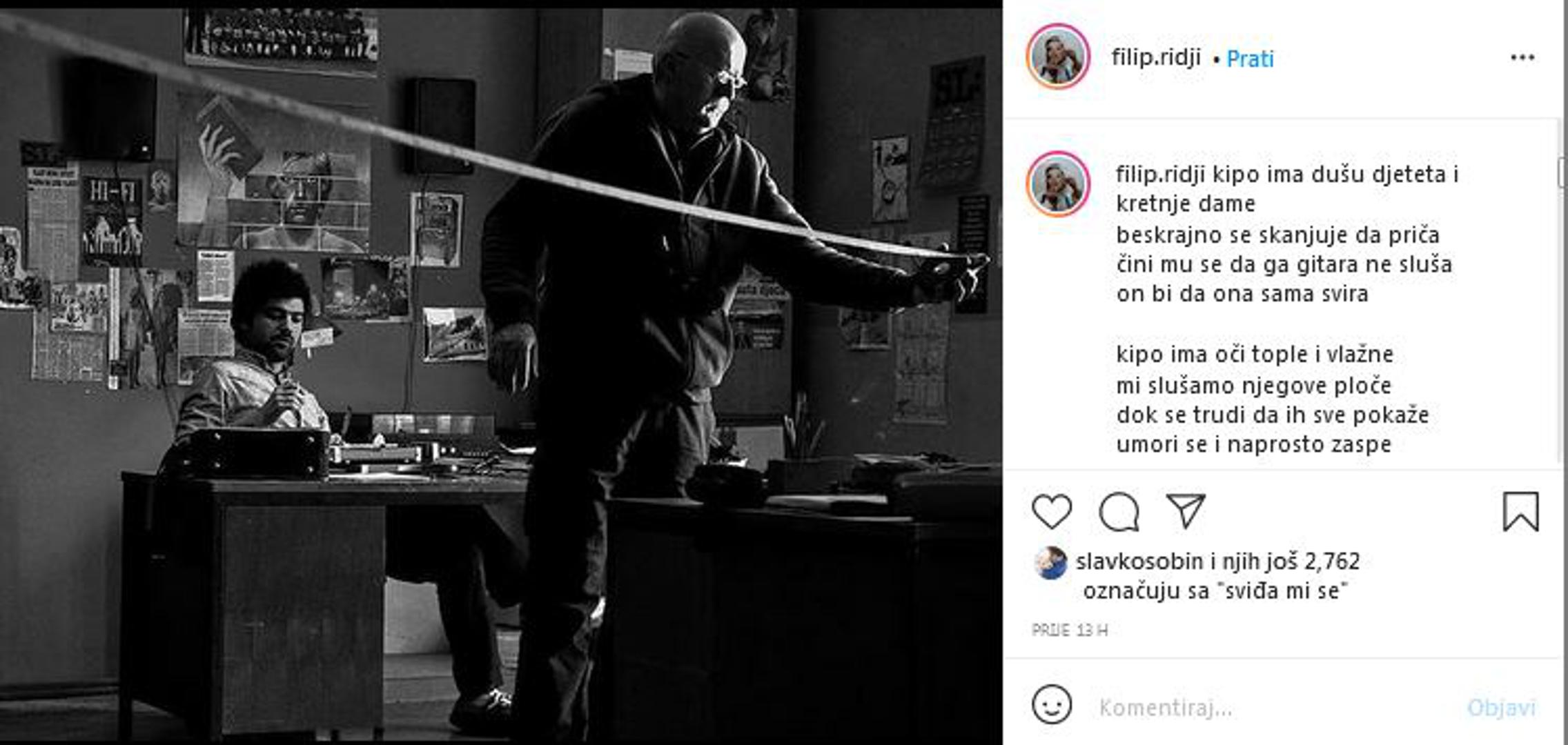 Tugu nije krio ni Filip Riđički. - Kipo ima dušu djeteta i kretnje dame, beskrajno se skanjuje da priča, čini mu se da ga gitara ne sluša, on bi da ona sama svira. Kipo ima oči tople i vlažne, mi slušamo njegove ploče dok se trudi da ih sve pokaže, umori se i naprosto zaspe. U sobi tajac, sve se mijenja dok Kipo odmara, šale nema. Lord mu skida cipele, rasanjuje se dok ih žnjira, navlačimo kapute po uglovima i ostavljamo ga da sniva... Hvala Kipo. Budi mi dobro. Vidimo se, siguran sam, opet. Hvala za vožnju. Frend si mi zauvijek - poručio je na Instagramu.