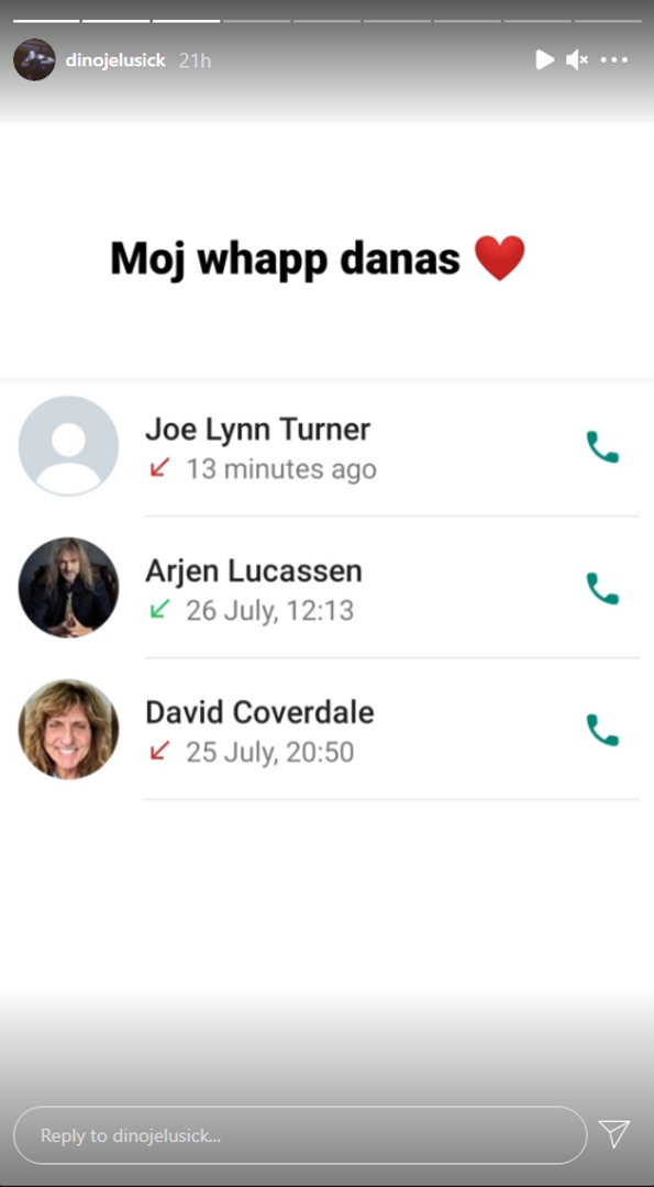 Osim tate jučer su ga zvali Radojka Šverko, Pero Galić, Jacques Houdek i Massimo. Nakon toga pokazao je i pozive na Whatsappu, a tamo su ga zvali Joe Lynn Turner, nekadašnji član Deep Purplea, zatim nizozemski roker Arjen Lucassen, a onda i David Coverdale, frontmen Whitesnakea.