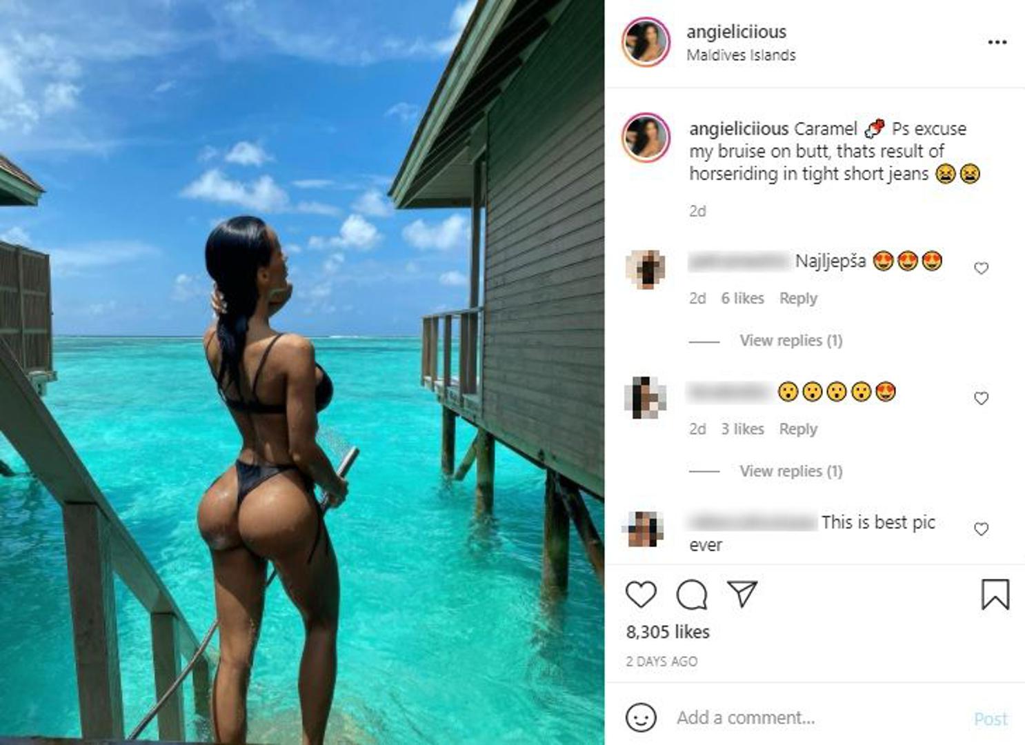 Sinjanka Anđela Šimac, djevojka Dinamovog nogometaša Lirima Kastratija, na Instagramu je ojavila fotografiju koja je u kratkom roku skupila više od 8000 lajkova i 200 komentara. Anđela i Lirim na odmoru su na Maldivima, a Anđela je pozirala u tangama, istaknuvši pozadinu u prvom planu.