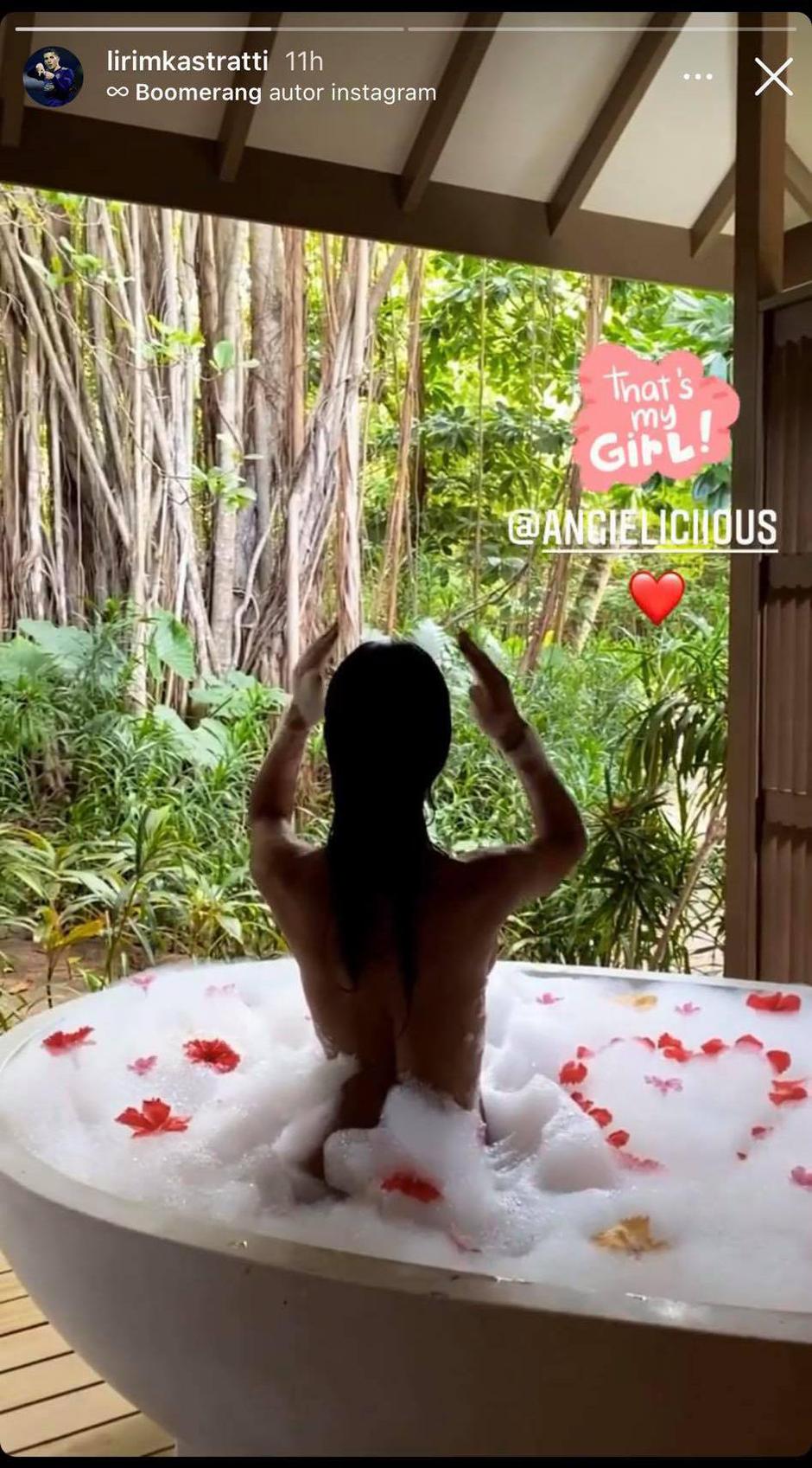 Da je itekako ponosan na svoju djevoku pokazao je i sam Kastrati, koji je sinoć na Instagram Storyju objavio fotografiju na kojoj gola Anđela uživa u kupki.