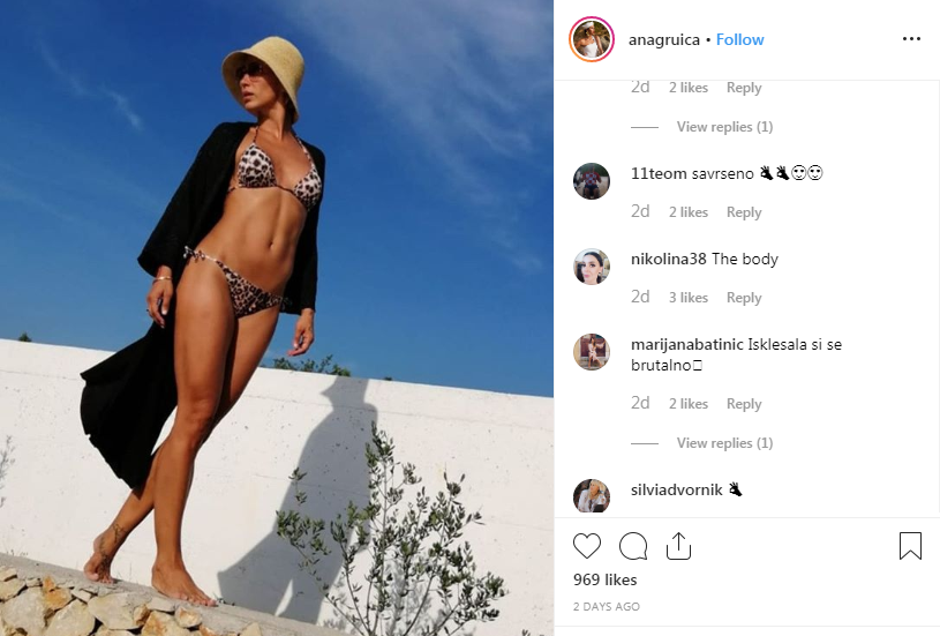 Ana je odlučila prihvatiti najveći trend sezone, pa se tako fotkala u kupaćem kostimu sa životinjskim uzorkom, točnije leopard uzorkom.Ana je pokazala kako se isplati svakodnevno raditi na sebi te dokazala da ima isklesane noge i trbušne mišiće. Fanovi su je podržali lajkovima i komplimentima.
