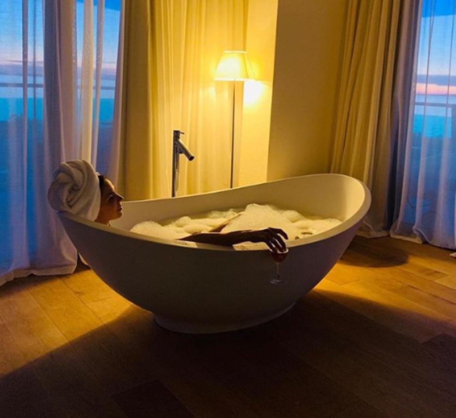 Glumica je objavila fotografiju na kojoj pozira u kadi, u pjenušavoj kupki s čašom vina u ruci.