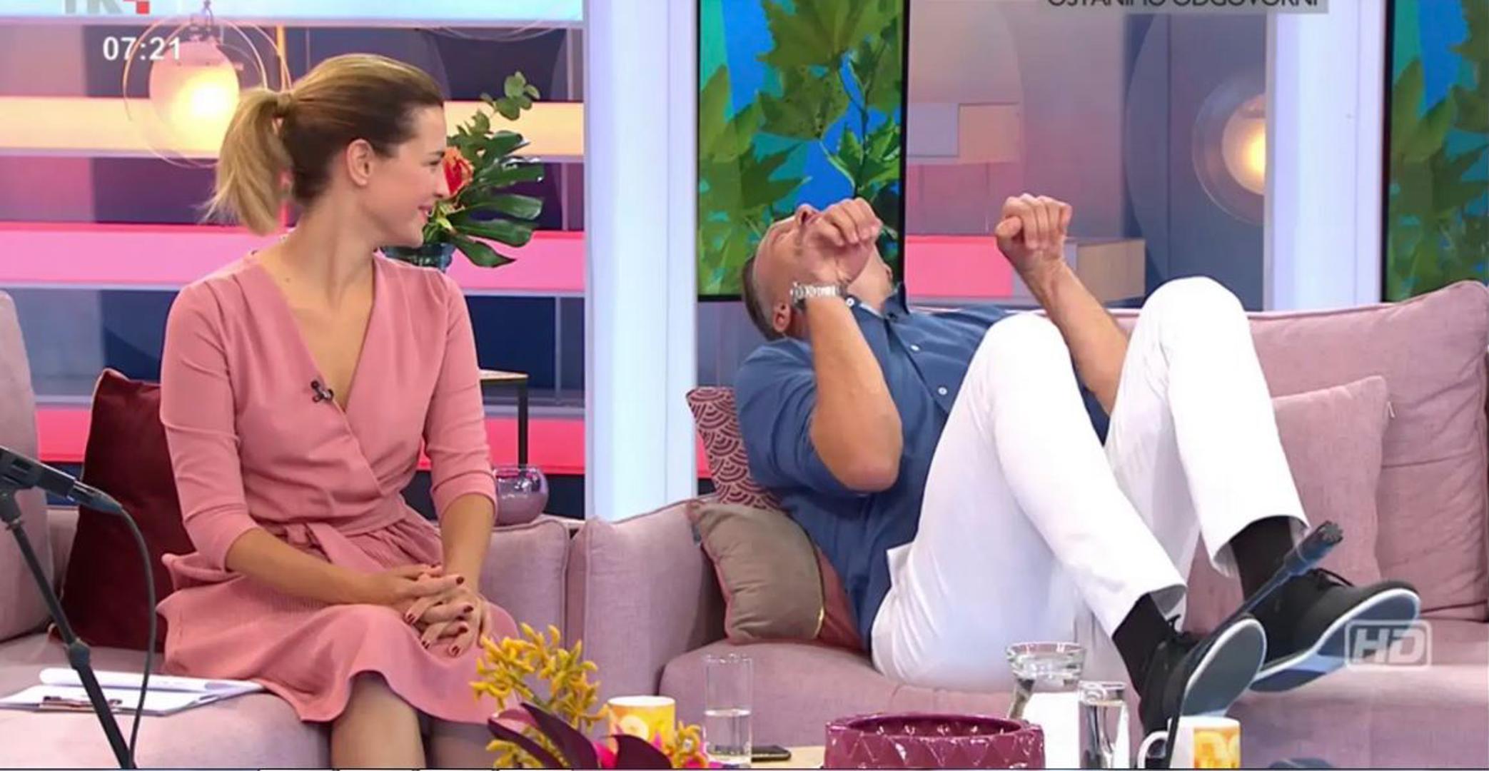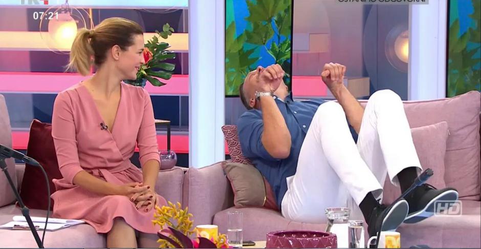 Veselo je bilo u jutros u emisiji ''Dobro jutro, Hrvatska''. U voditeljskoj ulozi našli su se Doris Pinčić Rogoznica i njezin kolega Ognjen Golubić, a kao i svakog jutra dio emisije bio je posvećen zdravom načinu života tj. tjelovježbi koju je gledateljima ovog puta demonstrirala fizioterapeutkinja Enea.