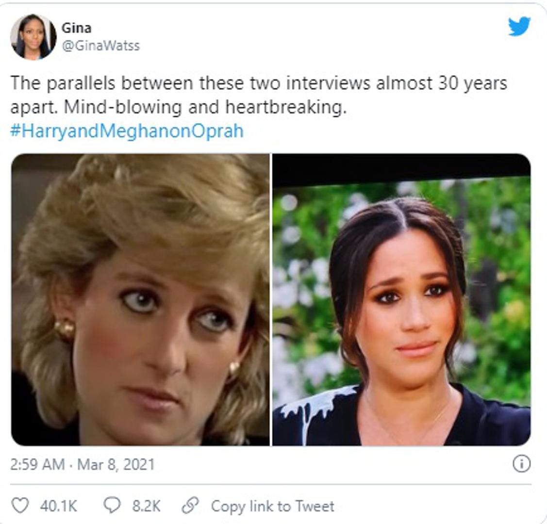 Drugi korisnici društvenih mreža istaknuli su sličnosti intervjua s neslavnim intervjuom princeze Diane Panorama s Martinom Bashir 1995. godine.