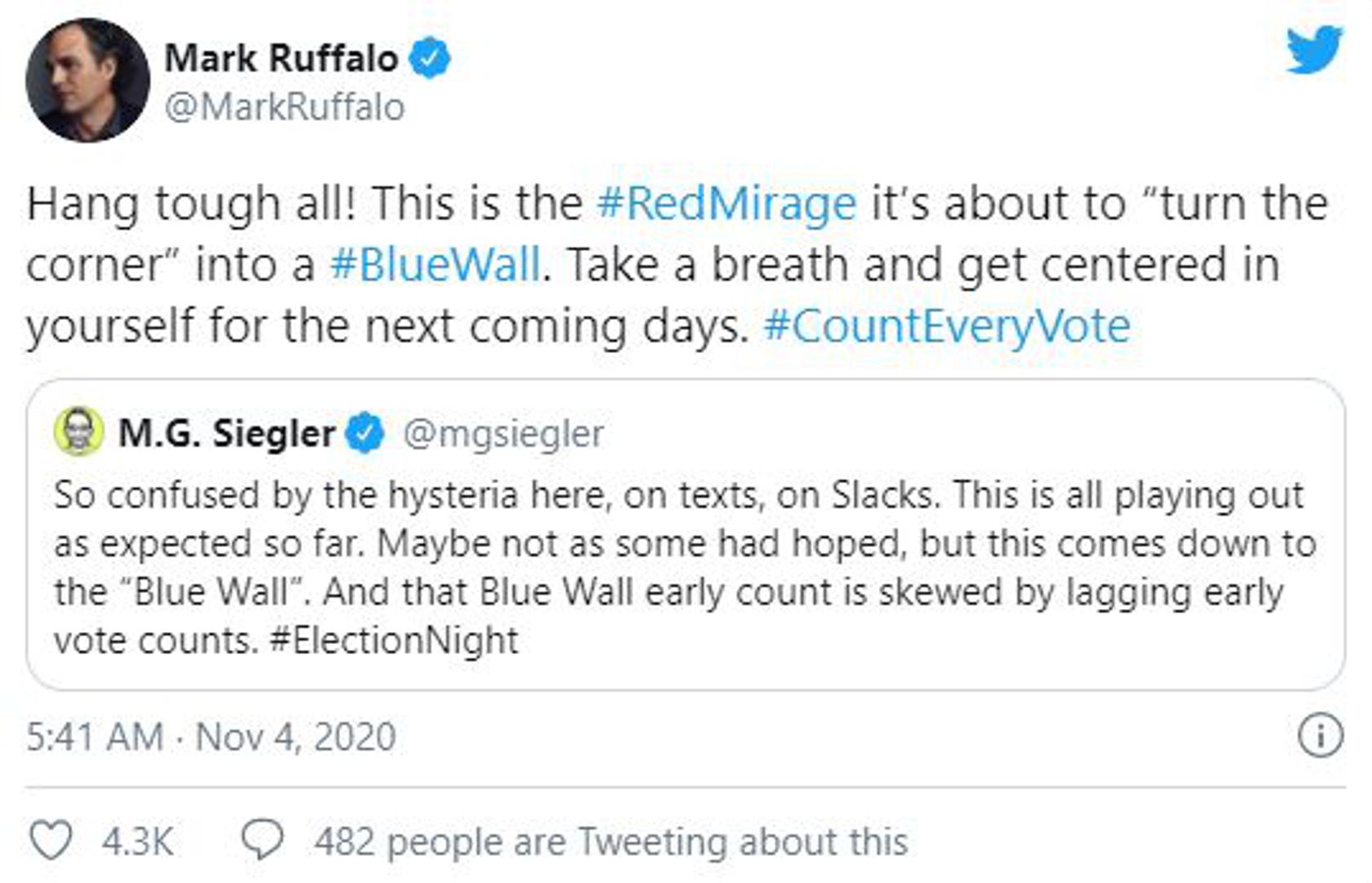 Glumac Mark Ruffalo na Twitteru poziva ljude da misle pozitivno te želi da se izbroji svaki glas.