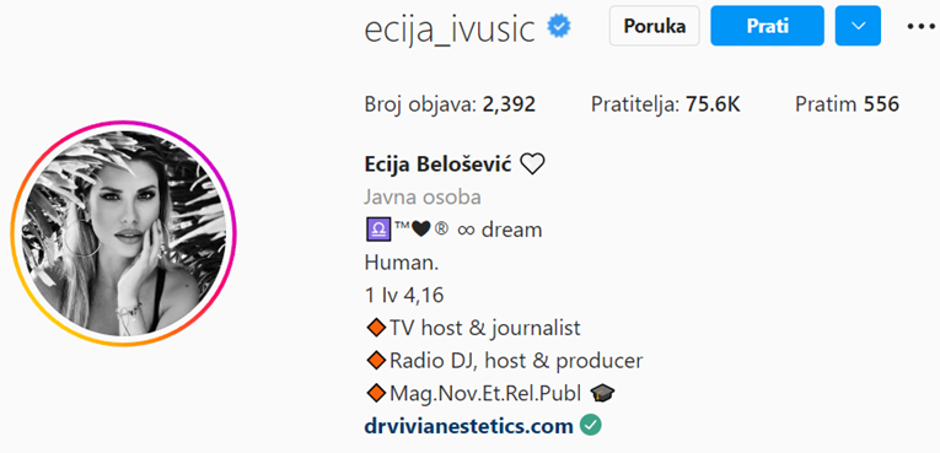 Proteklog vikenda bivša voditeljica Ecija Ivušić (35) i bubnjar grupe Pravila igre Goran Belošević (37) i vjenčali su se na otoku Vrniku pred oko 80 uzvanika, a odmah nakon vjenčanja Ecija je svoje pratitelje na Instagramu, kojih ima više od 75,6 tisuća, iznenadila jednom promjenom. Naime, uz njezino ime sada umjesto djevojačkog prezimena stoji prezime Belošević.