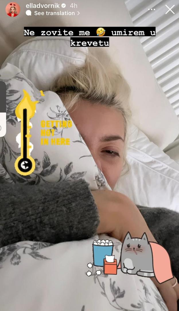 ''Ne zovite me. Umirem u krevetu'' napisala je Dvornik. U idućoj objavi dodala je i da ima temperaturu. Više detalja i o kojoj je točno bolesti riječ influencerica još nije podijelila s pratiteljima.