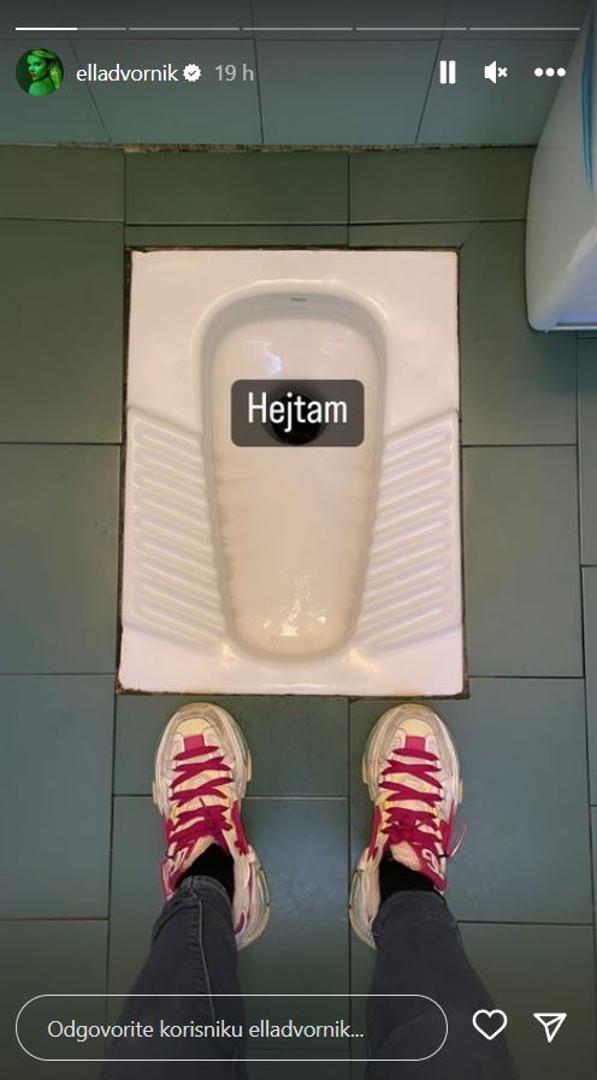 - Hejtam - napisala je Ella uz objavu na kojoj pozira pored čučavca.