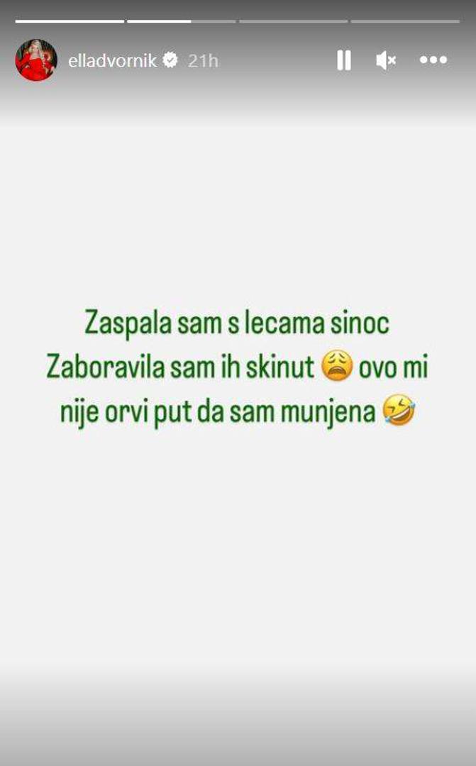 -Imala sam let za Beograd danas ujutro u i na putu za aerodrom shvatim da nemam dokumente. Sada lagano rent a car i vozi. Skup sport je biti munjen- napisala je Ella na Instagram storyju pa potom otkrila kako je na aerodrom stigla sat vremena ranije kako bi pokupila svoju putovnicu.