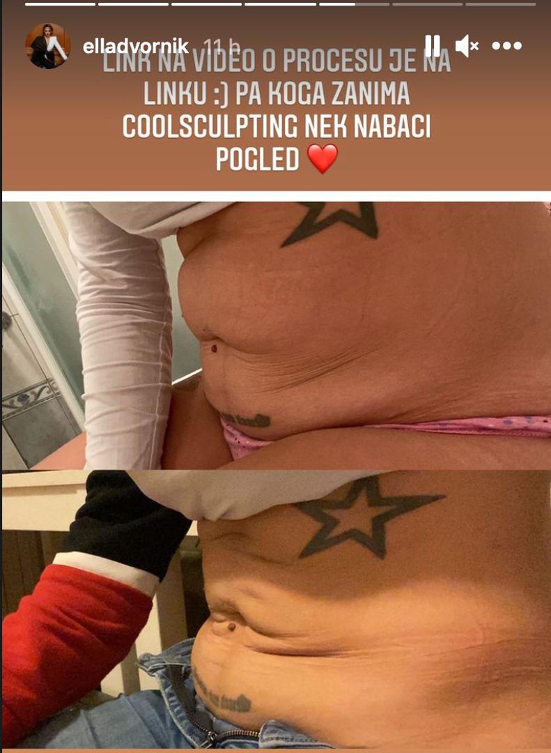 Ella pokazala kako joj trbuh izgleda prije i poslije tretmana zamrzavanja sala