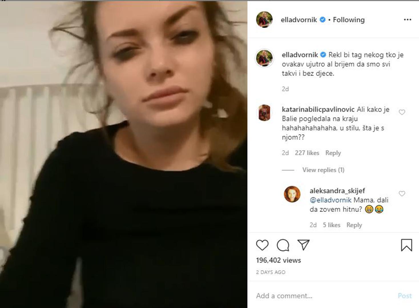 Ella Dvornik ponovno je na meti kritika. Na Instagramu je objavila snimku na kojoj hrani svoju kćerkicu Lumi te se na snimci, koja je očito nastala odmah nakon buđenja, vidi koliko je influencerica neispavana, a ima i ostatka šminke oko očiju.