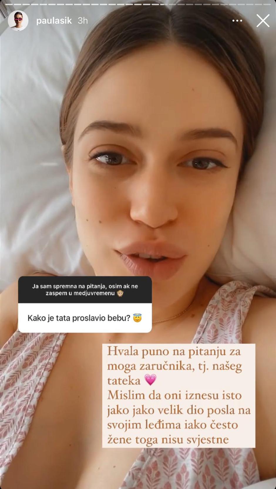 -Lia je po želji moga zaručnika, odnosno zajedničkoj želji. Zajedno nam Arta i Lia zvuči jako melodiozno tako da je ostalo Arta Lia, dodala je influencerica. Paula je također odgovorila na još nekoliko pitanja koja su joj pratitelji postavili, a posebno je emotivno odgovorila na pitanje kako je tata proslavio bebu.