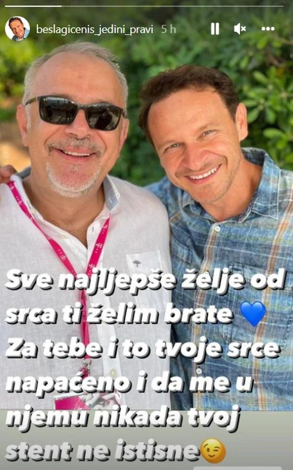 - Sve najljepše želje od srca ti želim brate. Za tebe i to tvoje srce napaćeno i da me u njemu tvoj stent nikad ne istisne - napisao je uz fotografiju.