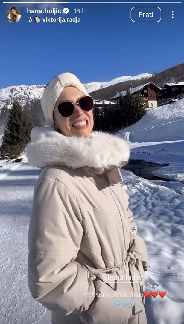 Splitska glazbenica Hana Huljić Grašo poznata je po samozatajnosti, no ovoga puta iznimku je napravila njezina bliska prijateljica. Viktorija Rađa je na svom Instagram Storyju podijelila snimku Hane kako se opušta na snijegu. Uz prizor nasmiješene Hane, Viktorija je kratko napisala: - Prekrasno jutro kod nas - otkrivši tako da zajedno provode vrijeme na odmoru.