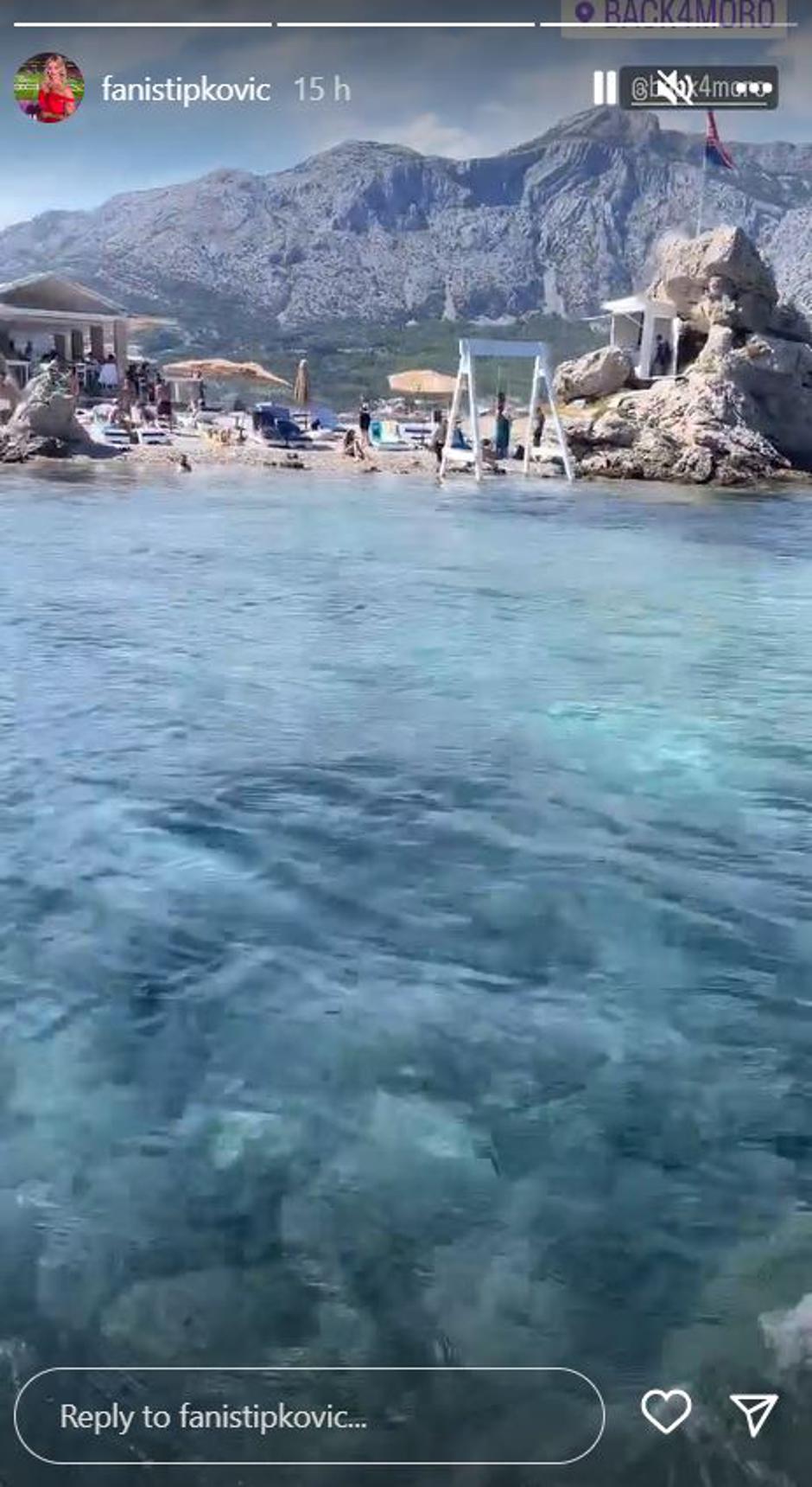 Fani je s pratiteljima dijelila i snimku vožnje brodom kojim su plovili korčulanskim arhipelagom. Jedno od mjesta na kojima su bili jest i otočić Vele Stupe i popularna plaža Moro Stupe. Inače, na toj su se plaži nedavno odmarali reprezentativci Luka Modrić i Mateo Kovačić s obiteljima.