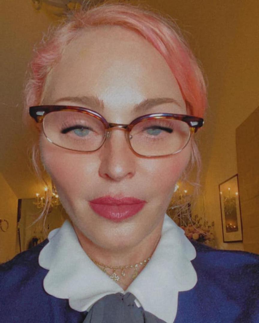 Na fotkama Madonna ima jako istaknute jagodice i malu bradu, ali i novu boju kose - ružičastu.