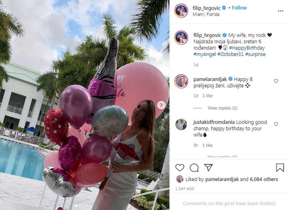 Najbolji hrvatski boksač Filip Hrgović priredio je suruzi Marineli nesvakidašnje iznenađenje za rođendan. Bračni par protekli je vikend proveo u Miamiju na Floridi, gdje se Filip priprema za iduće mečeve. Na Instagramu je objavio cijeli niz fotografija svoje supruge, te je napisao: