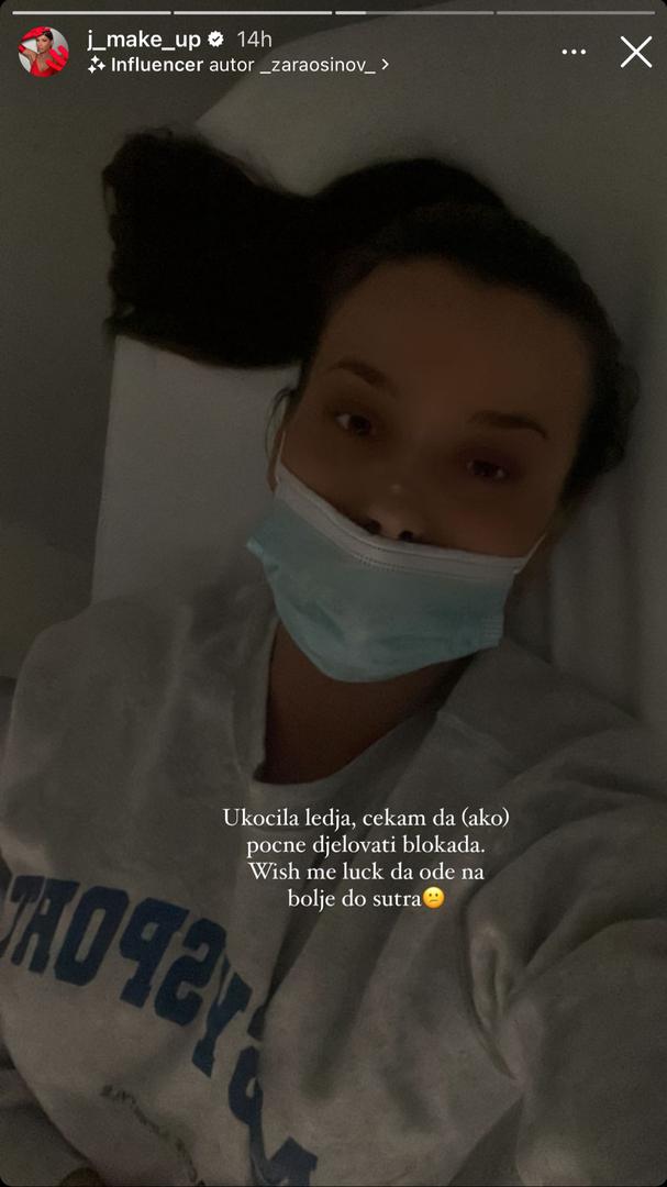 ''Ukočila leđa, čekam da (ako) počne djelovati blokada. Poželite mi sreću da ode na bolje - napisala je Jelena, potom je otkrila i kako je dobila novu dozu injekcija te kako situacija ide ''na bolje'' pa se obožavatelji nadaju kako će biti spremna za finale.