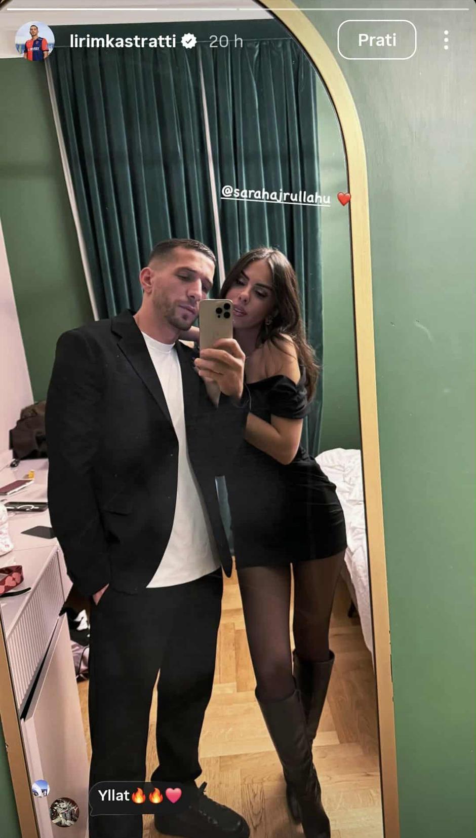 Izgleda da albanski nogometaš Lirim Kastrati, domaćoj javnosti poznat po igrama u dresu Dinama i Lokomotive, ali i po burnom privatnom životu, ponovno ljubi. Sa svojim je pratiteljima na Instagramu podijelio fotografiju na kojoj pozira ispred ogledala u društvu atraktivne brinete. Par je elegantno odjeven, Kastrati u crno-bijeloj kombinaciji sa sakoom, a njegova, prema svemu sudeći nova odabranica u kratkoj crnoj haljini i visokim čizmama.