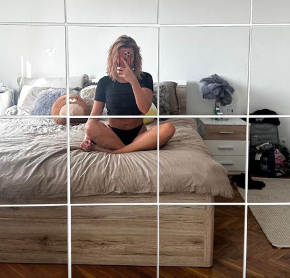 Najpopularnija domaća influencerica, Ella Dvornik (33), odlučila je sa svojim pratiteljima podijeliti kako provodi jutro. Ella je na svojem Instagram storyju podijelila nekoliko snimki, a na jednoj od njih istaknula je kako leži u krevetu. Ella je pokazala da se probudila te da je još malo pospana, a potom je nastavila ležati u krevetu. "Napokon sam se naspavala", poručila je pored fotografije na kojoj je istaknula u čemu je spavala i tetovažu na nozi. Influencerica se izvukla iz pokrivača i otkrila da se radi o crnoj majici i donjem vešu, a potom je pratitelje upitala kako njima napreduje tjedan. Uz to pozirala je i u ogledalu te tako istaknula da ustaje iz kreveta, a iza nje se vidi i da je spremila krevet.
